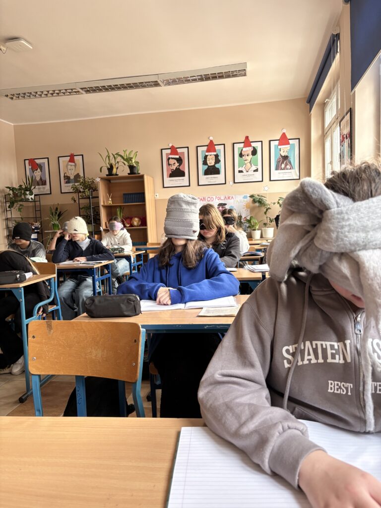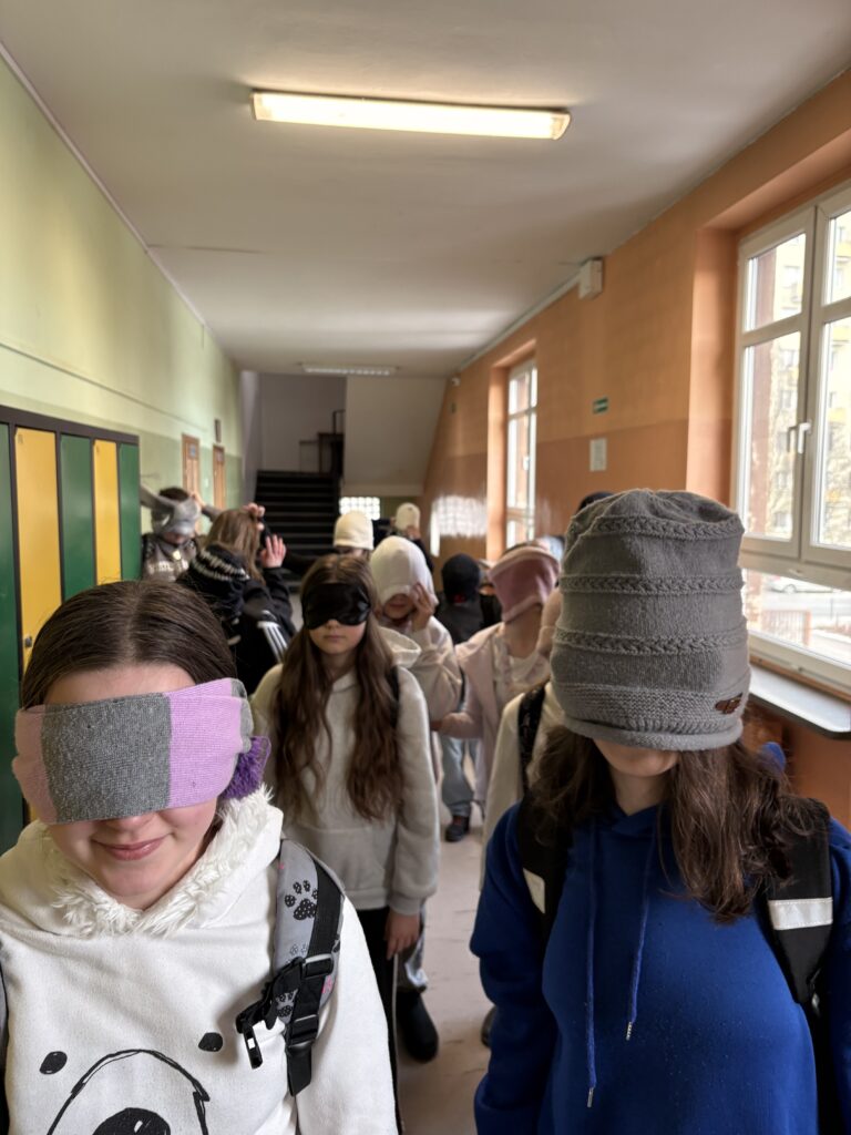 Dziś na lekcji języka polskiego w klasie 5a przenieśliśmy się w świat „Katarynki” Bolesława Prusa – ale w sposób szczególny. Uczniowie wcielili się w rolę niewidomej dziewczynki, zakładając opaski na oczy i próbując doświadczyć codzienności bohaterki noweli.