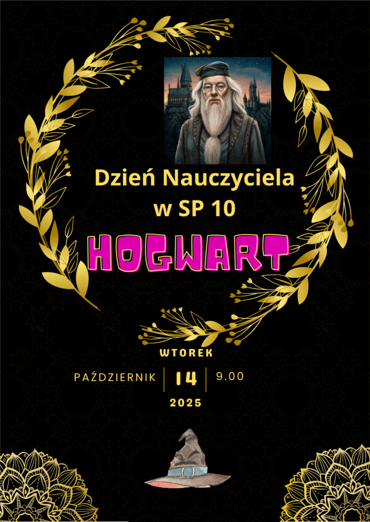14 października – Dzień Nauczyciela w magicznym stylu! Kochani Uczniowie i Nauczyciele!Tego dnia w SP 10 w Poznaniu przenosimy się do Hogwartu! 14.10. (wtorek) – wszyscy przebieramy się za postacie z Harry’ego Pottera: