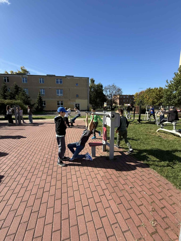 Tegoroczna jesień zaczęła się wyjątkowo ciepło i słonecznie. Korzystając z tak pięknej pogody klasy 3a i 3b wyruszyły na spacer do drugiego budynku szkoły mieszczącego się przy ul. Ściegiennego. Za