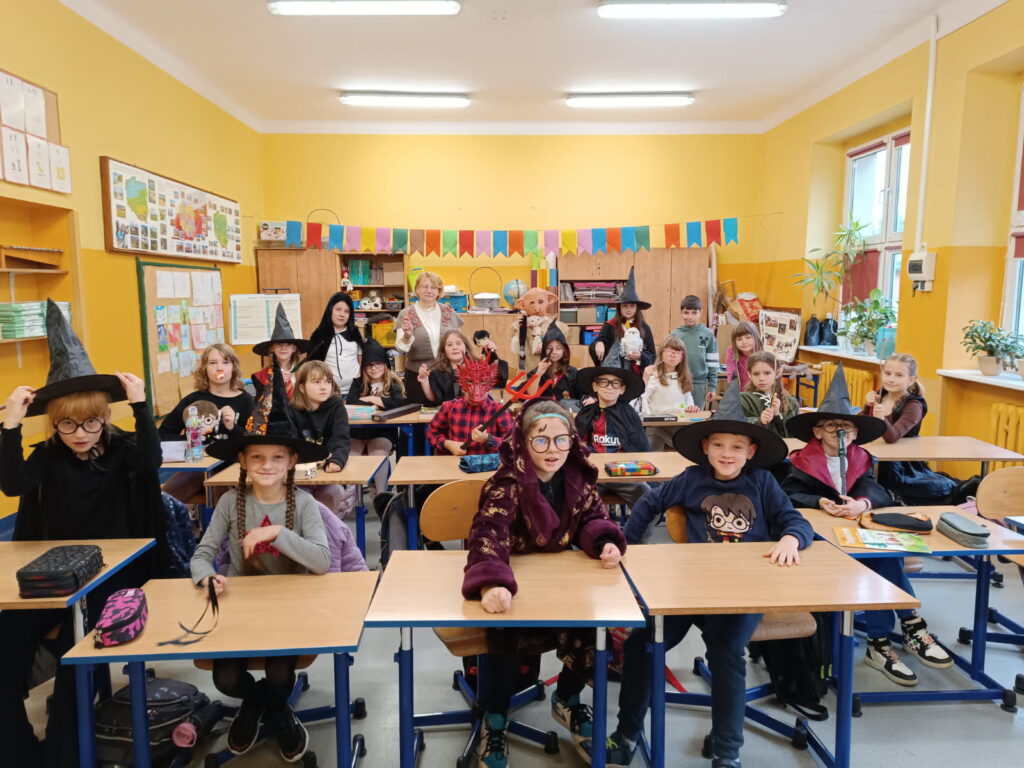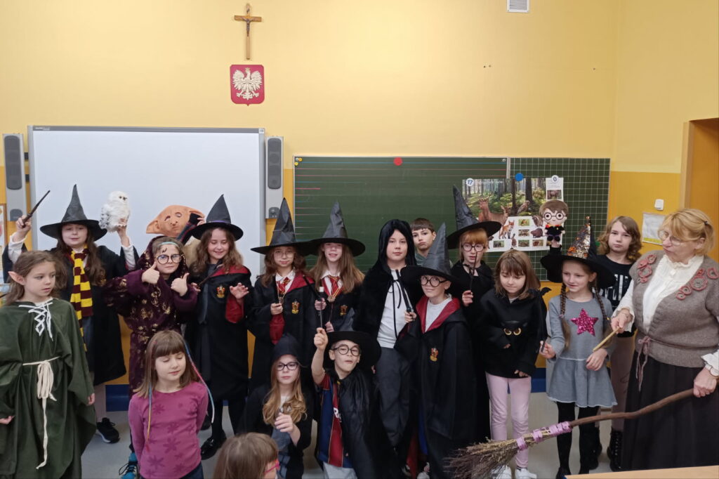 Tegoroczny Dzień Edukacji Narodowej w naszej szkole przeniósł wszystkich – uczniów i nauczycieli – wprost do świata czarodziejów! Korytarze zamieniły się w korytarze Hogwartu, a wśród uczniów można było spotkać Hermionę, Harry’ego, profesora Snape’a czy samą Minerwę McGonagall. Nawet nauczyciele dali się porwać magii i pojawili się w strojach godnych prawdziwych mistrzów zaklęć.