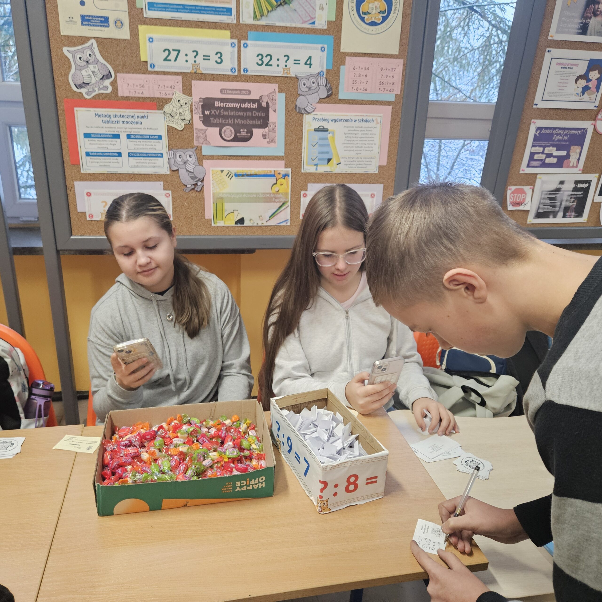 W tym tygodniu świętowaliśmy Dzień Tabliczki Mnożenia. To wyjątkowe wydarzenie, podczas którego starsi uczniowie wcielili się w rolę egzaminatorów i… sprawdzali znajomość tabliczki mnożenia u młodszych kolegów i koleżanek.