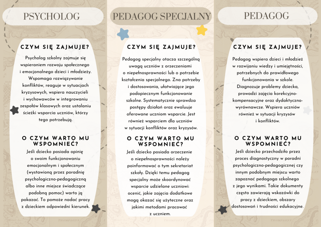 Ich najważniejszym zadaniem jest wspieranie Uczniów, Rodziców i Nauczycieli w radzeniu sobie z różnymi problemami i trudnościami.