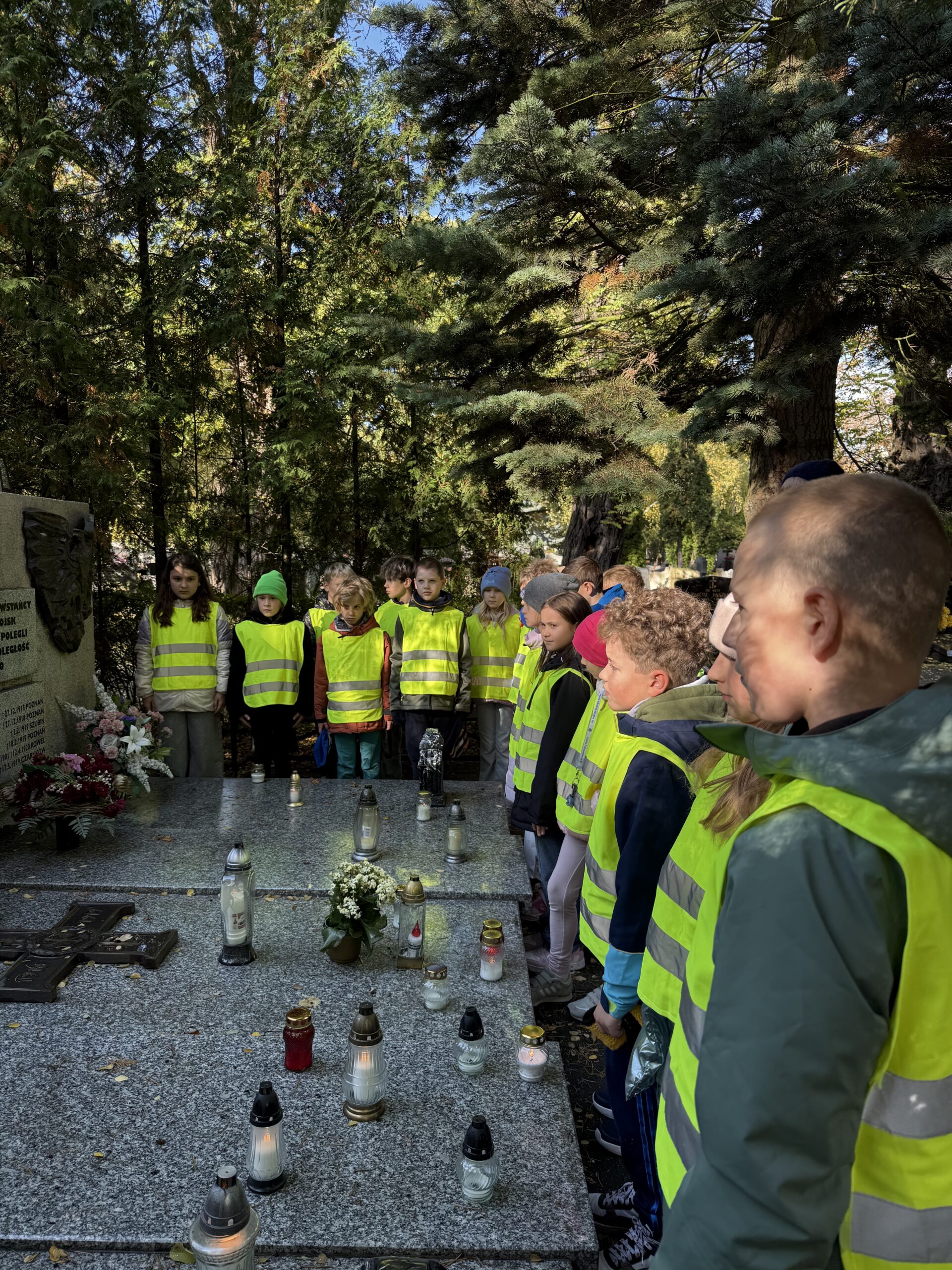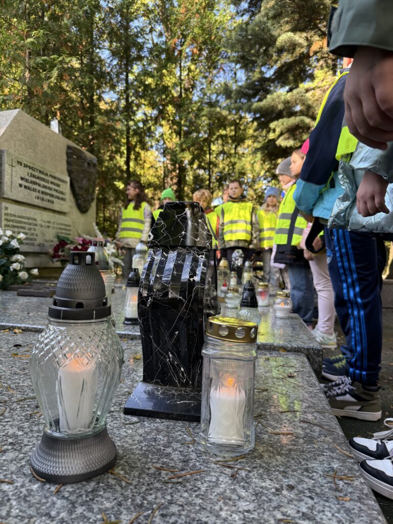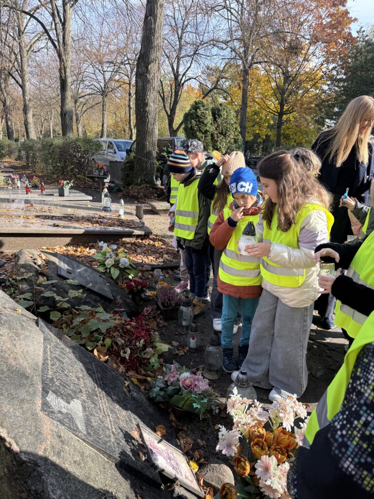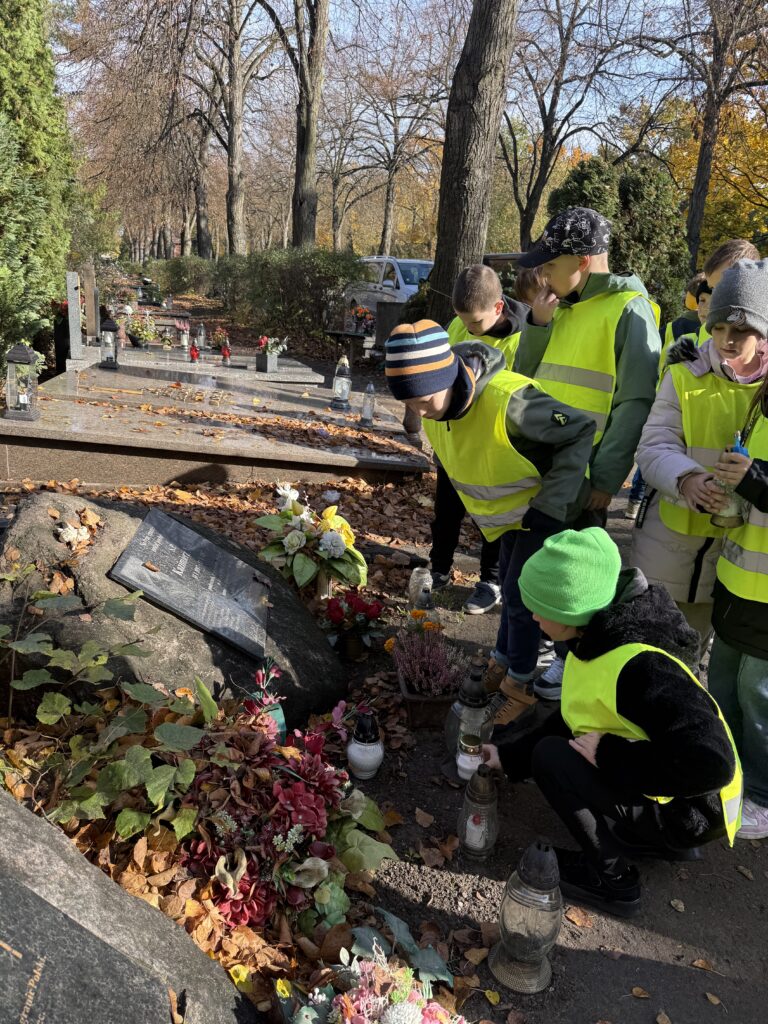 Z szacunku do miejsca i tradycji dzieci dbały o właściwe zachowanie. Spacer alejkami cmentarza był dla uczniów głębokim przeżyciem i okazał się jedną z ważniejszych lekcji wychowania patriotycznego.