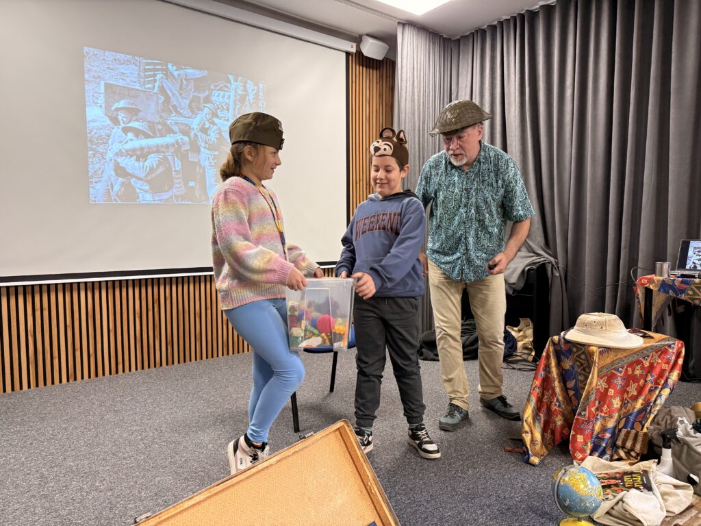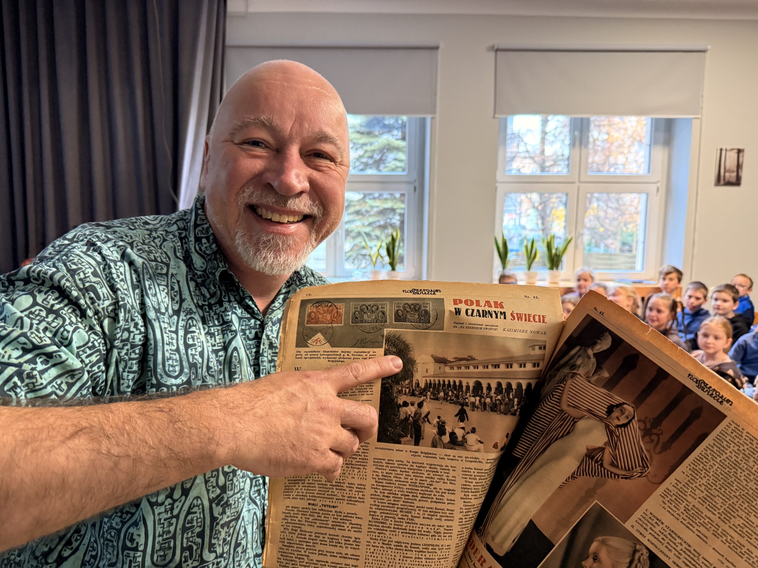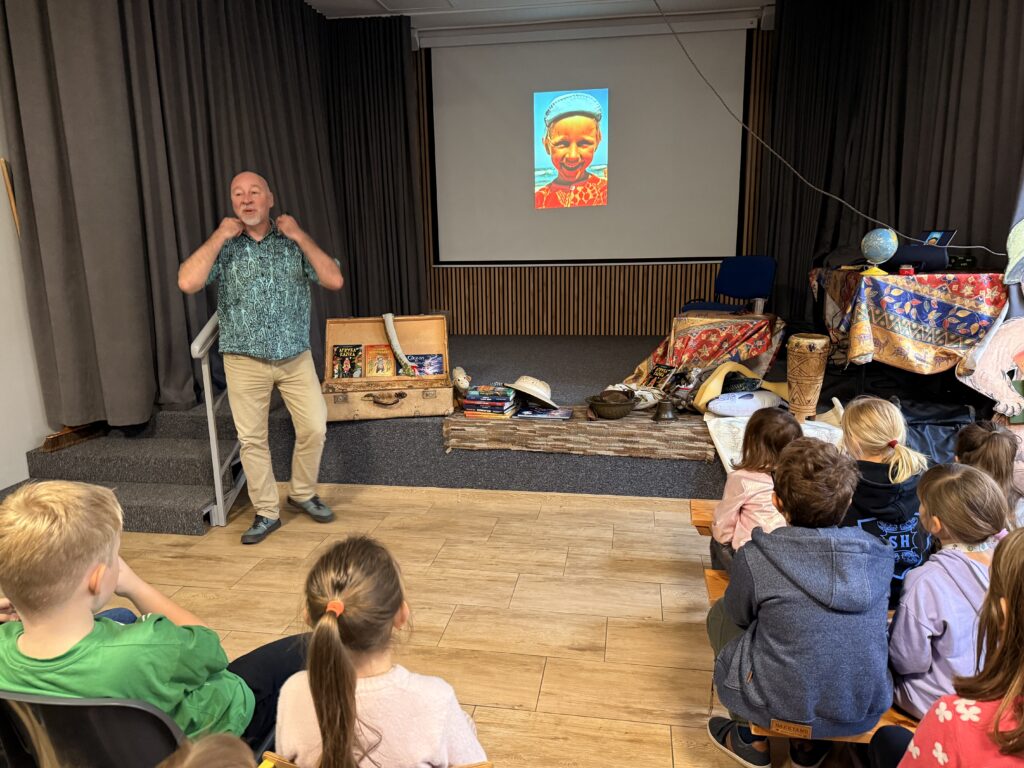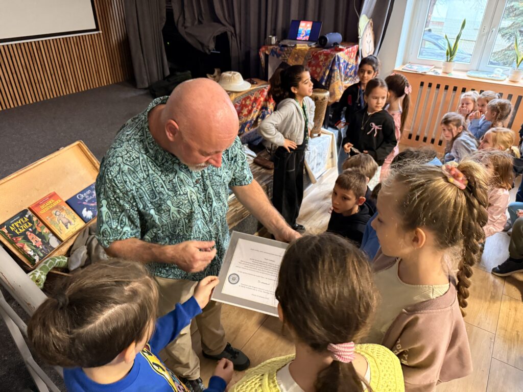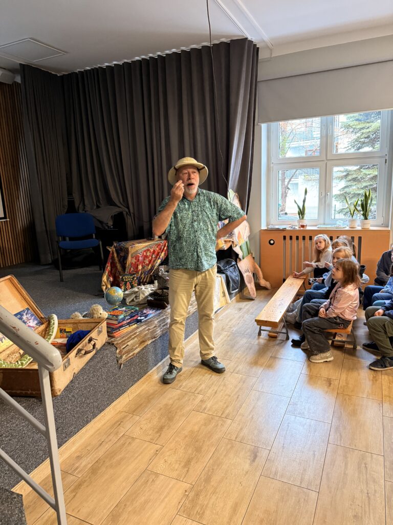 W czwartek 20 listopada 2025 r. uczniowie klas drugich i trzecich uczestniczyli w niezwykle interesującym spotkaniu autorskim. Łukasz Wierzbicki: redaktor, biografista, podróżnik i autor książek dla dzieci z ogromną pasją prezentował swoją literacką twórczość. Jego powieści: „Afryka Kazika”, „Dziadek i niedźwiadek”, „Ocean to pikuś”, „Machiną przez Chiny”, oraz inne cieszą się dużym zainteresowaniem wśród czytelników w Polsce. Niektóre z nich zostały wyróżnione i nagrodzone w konkursach literackich, a także w przeglądach nowości wydawniczych. Podczas spotkania Pan Łukasz Wierzbicki w charyzmatyczny sposób przybliżył uczniom barwne, a czasem niebezpieczne przygody swoich literackich bohaterów. Pisarz nawiązał z dziećmi niezwykłą nić porozumienia się.