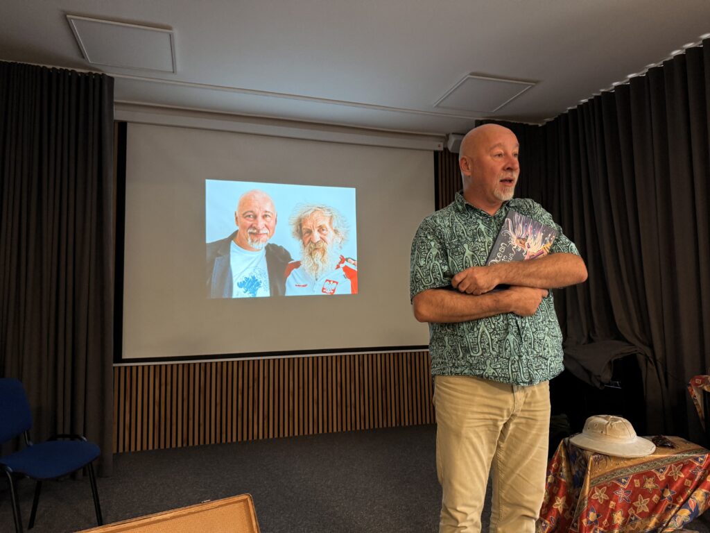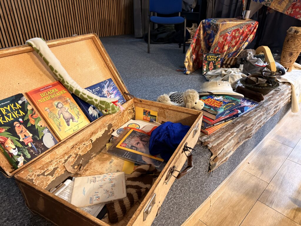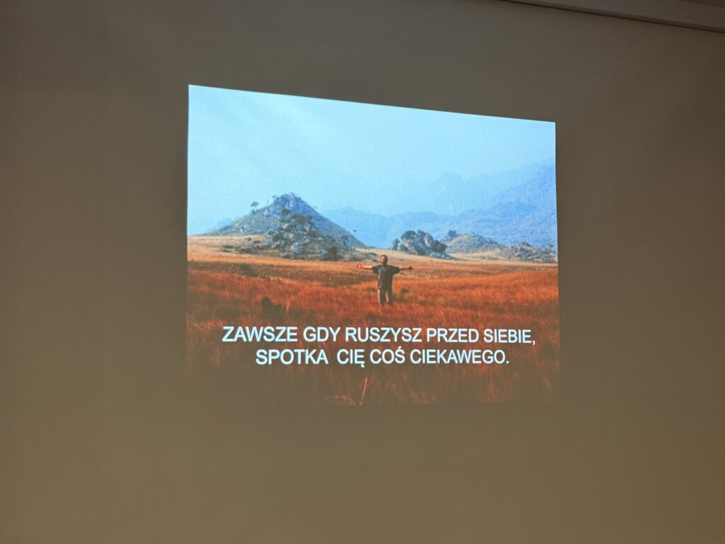 Pokazując prezentację multimedialną, umożliwił uczniom odbycie wirtualnej podróży po dalekiej Azji i Afryce. Opowiedział też o niedźwiadku Wojtku, autentycznym przyjacielu żołnierzy z Armii Andersa, przez co przybliżył fragment historii II Wojny Światowej, dotyczącej szlaku bojowego II Korpusu Polskiego i Bitwy o Monte Cassino. W trakcie spotkania poznaliśmy również inspirującą historię Aleksandra Doby – podróżnika i kajakarza, który jako pierwszy samotnie pokonał kajakiem Ocean Atlantycki.