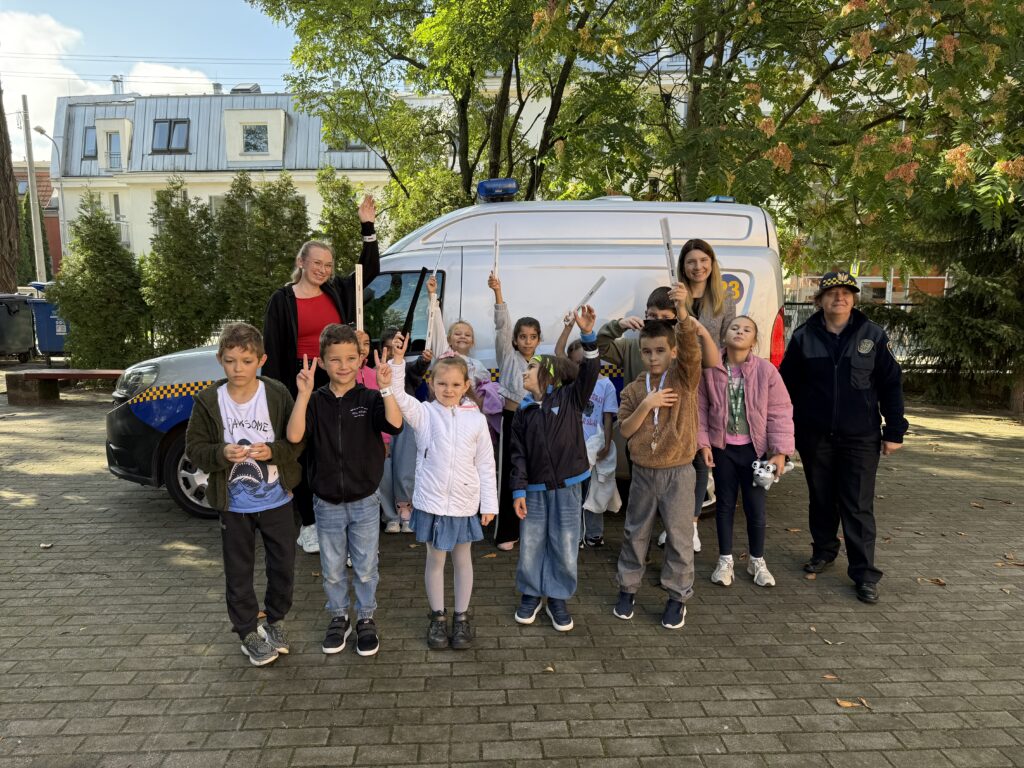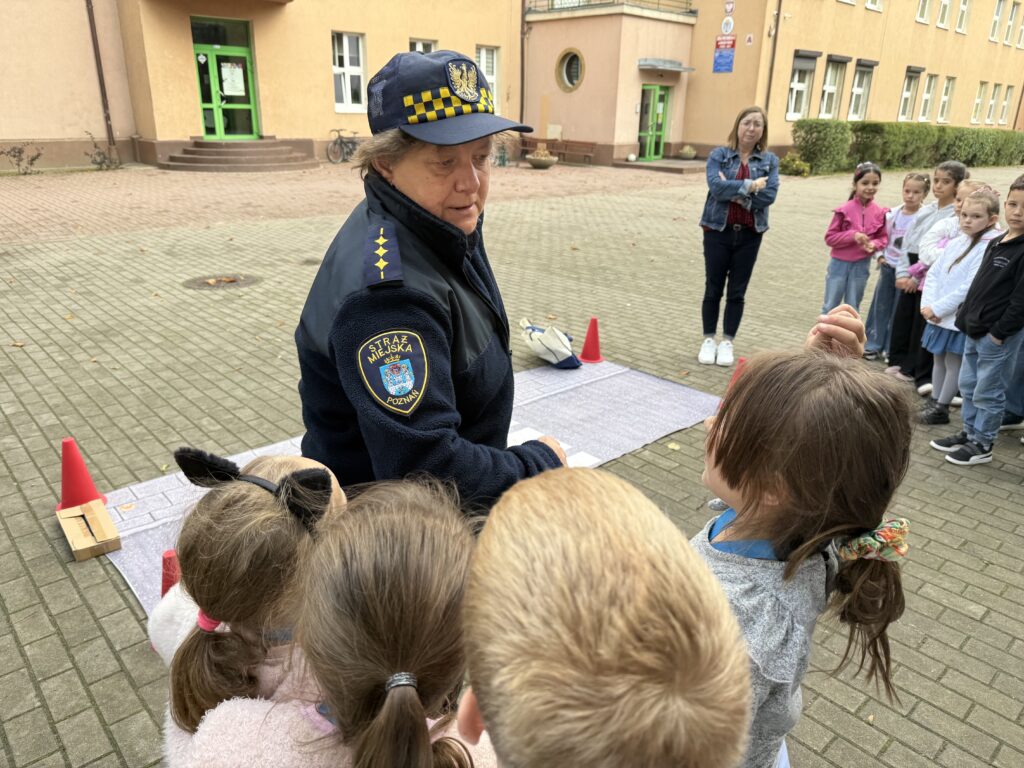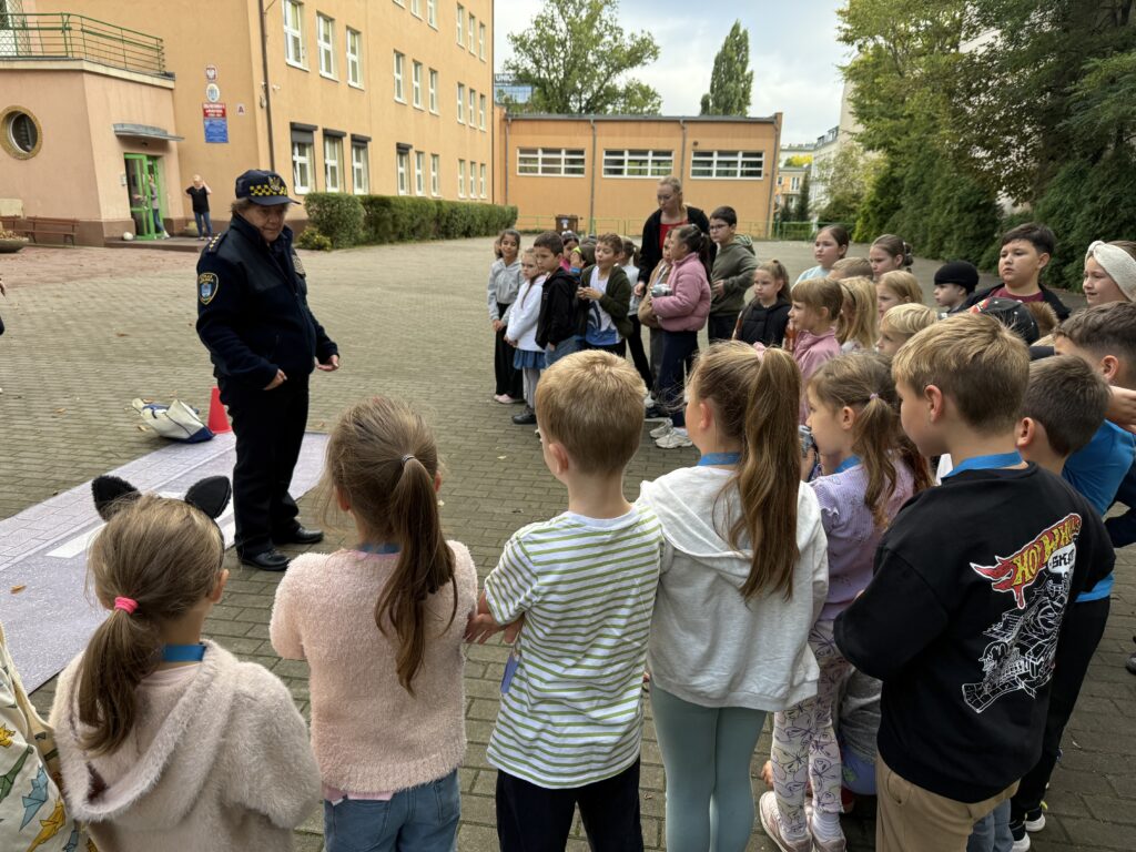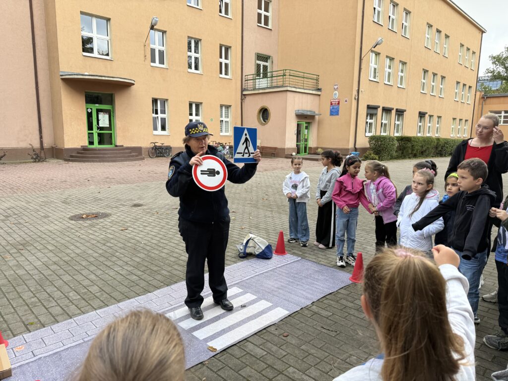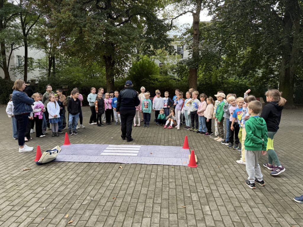 Uczniowie dowiedzieli się, jak prawidłowo przechodzić przez przejście dla pieszych i zachowywać się blisko jezdni. Na zakończenie wszyscy uczestnicy otrzymali w prezencie odblask, który uczni ich widocznymi dla innych uczestników ruchu drogowego 🙂