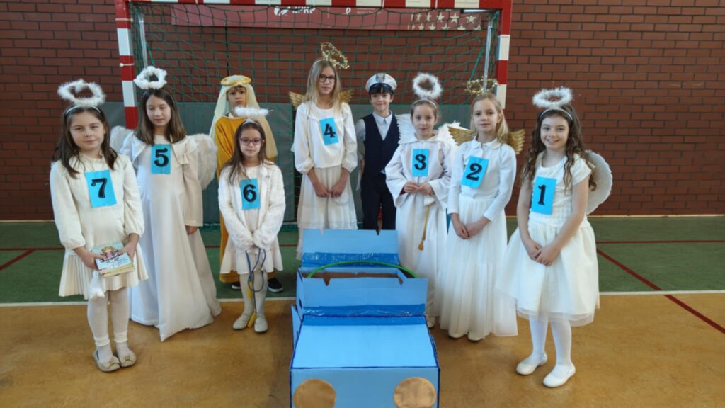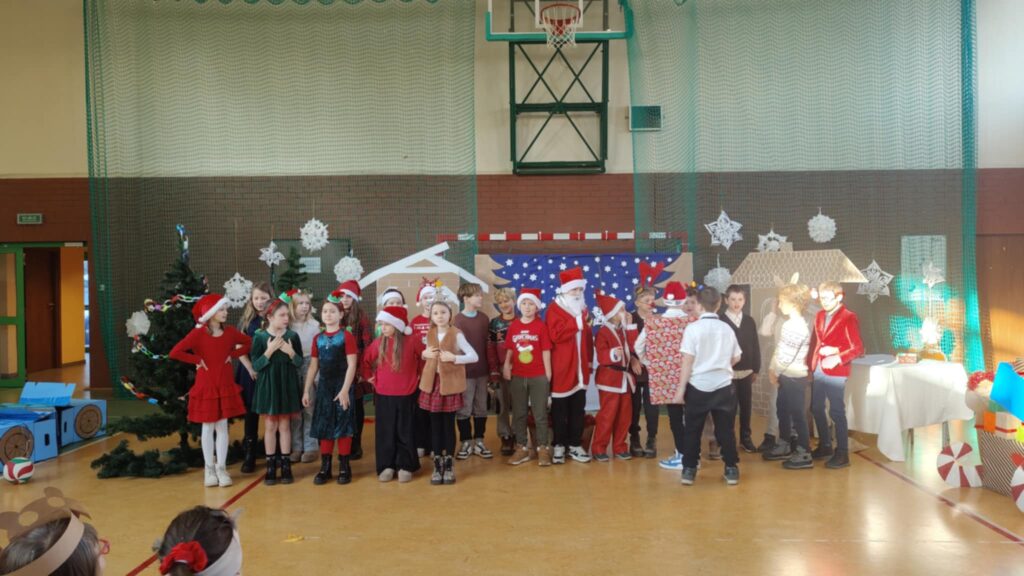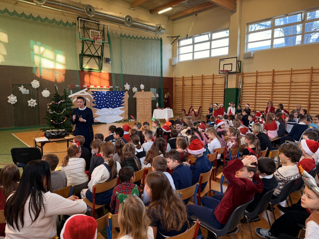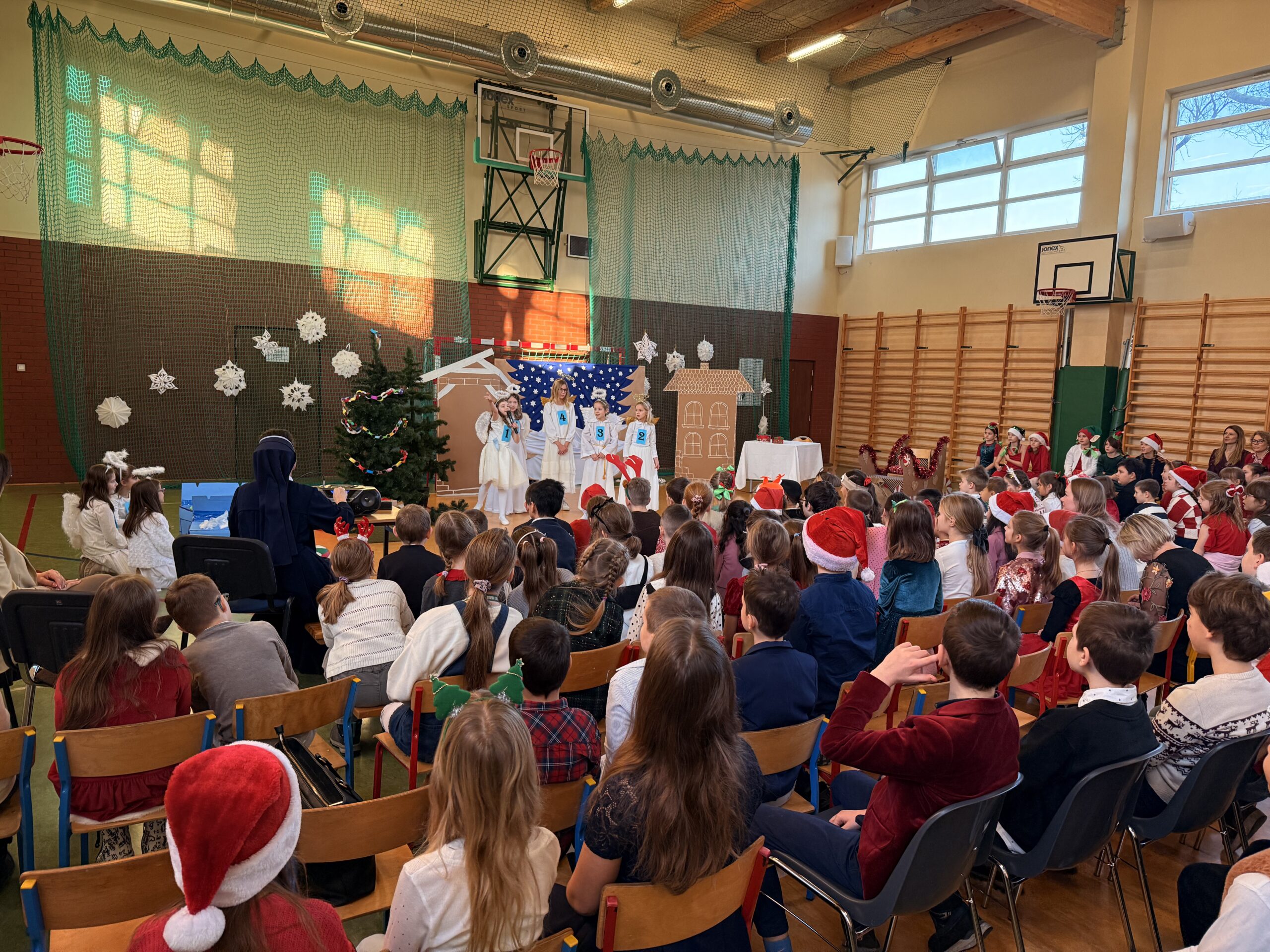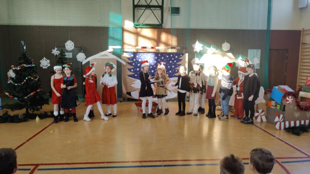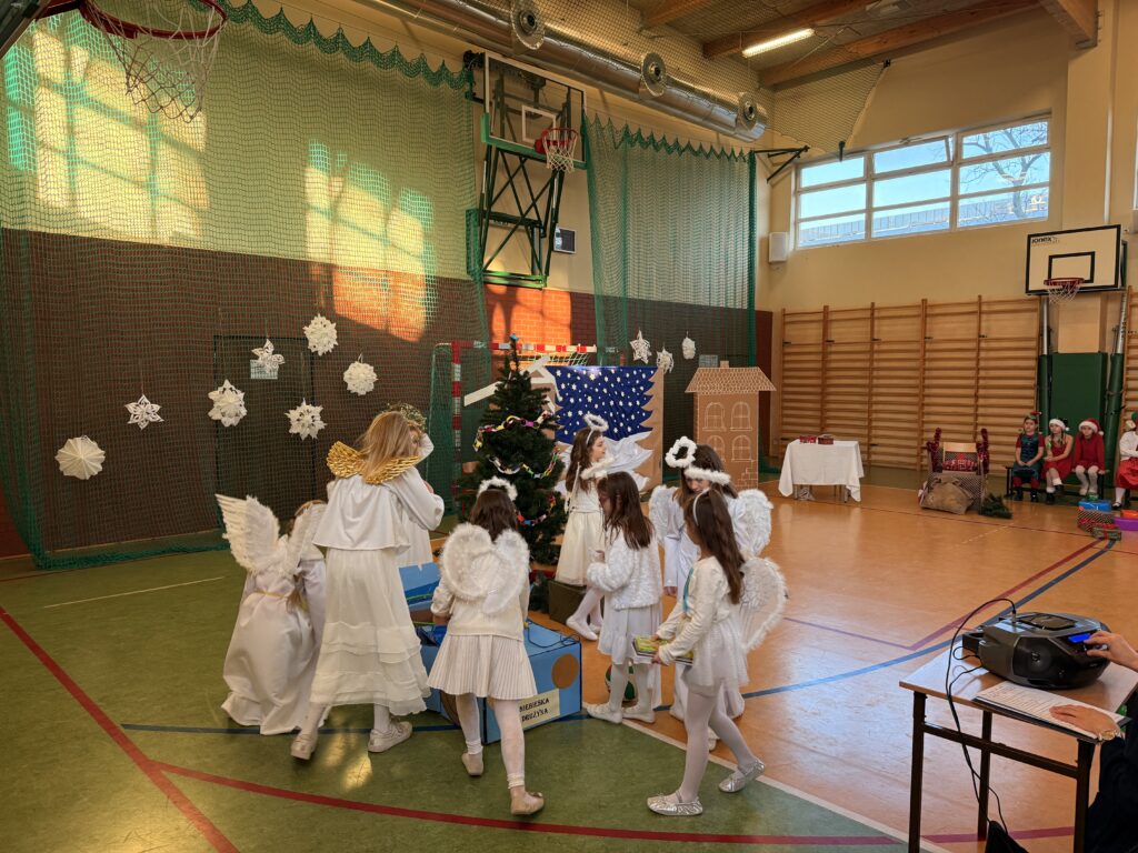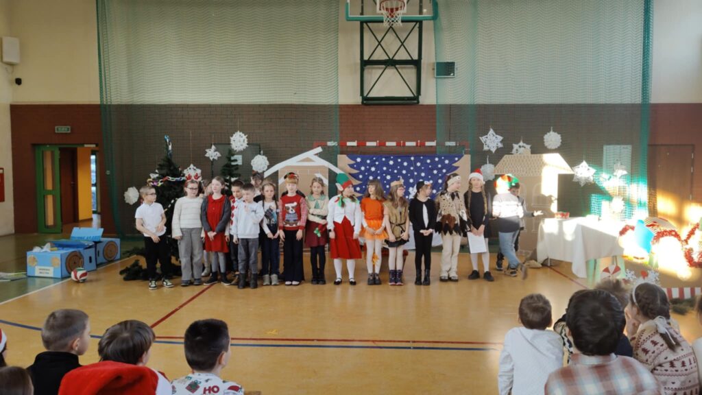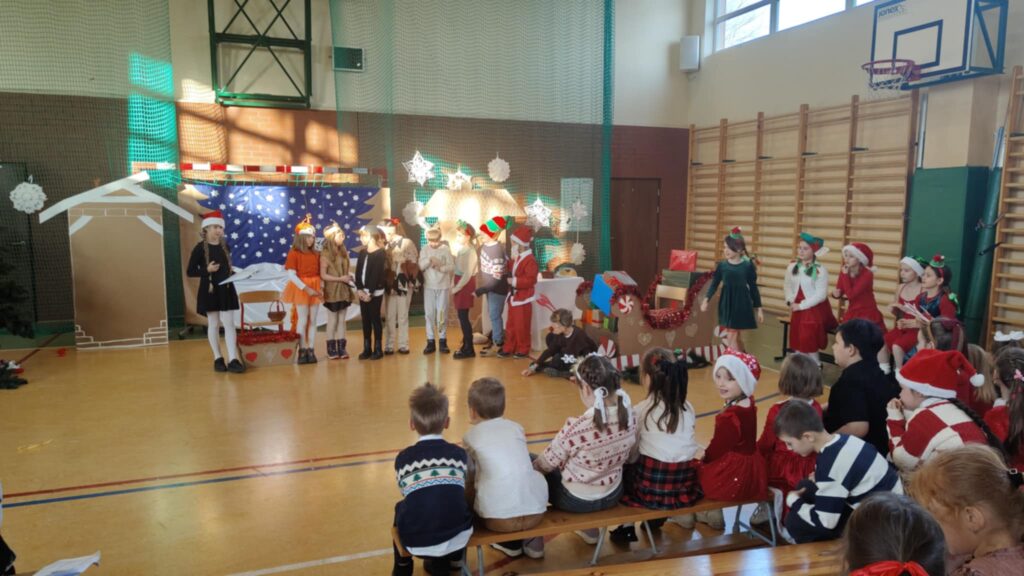 W naszej szkole odbyło się świąteczne spotkanie uczniów klas 1–3 🎁. Wydarzenie rozpoczęło się pięknymi jasełkami 🌟, które wprowadziły wszystkich w wyjątkowy, bożonarodzeniowy nastrój. Następnie uczniowie zaprezentowali świąteczne przedstawienie o Świętym Mikołaju 🎅, pełne radości i uśmiechu 😊.