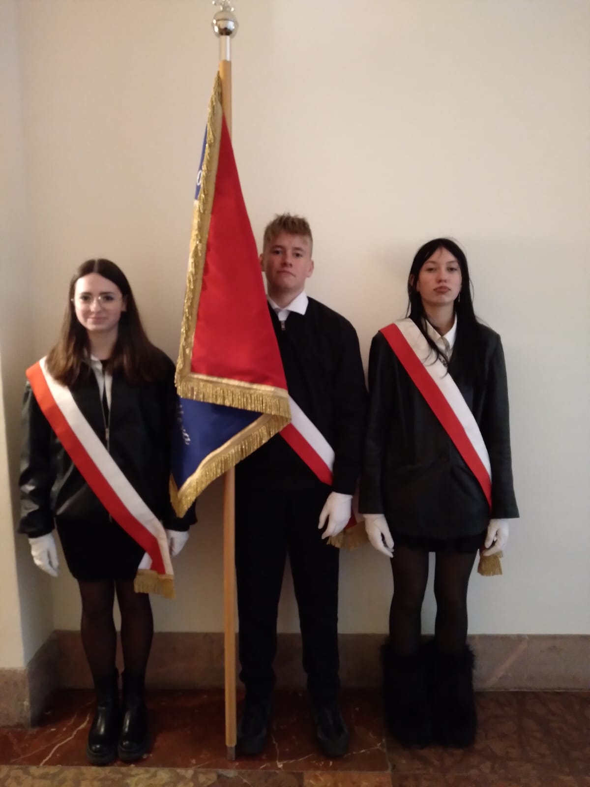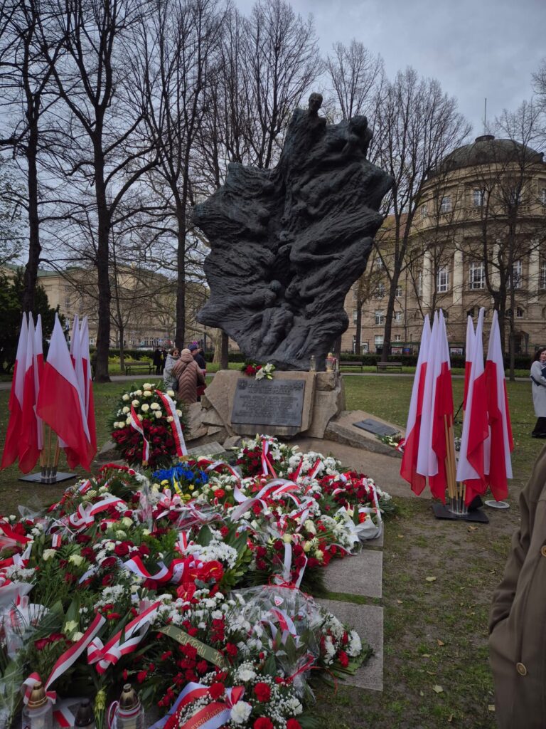 Sztandar naszej szkoły przy Pomniku Ofiar Katynia i Sybiru