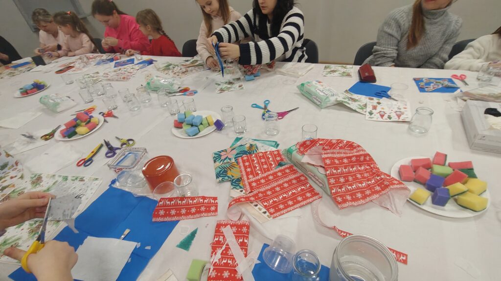 Dzieci z klasy 2a wraz z rodzicami wzięły udział w świątecznych warsztatach decoupage. Uczestnicy pod kierunkiem wychowawczyni, pani Joanny Prokop, wykonali przepiękne świeczniki, które następnie można było kupić na szkolnym kiermaszu bożonarodzeniowym.