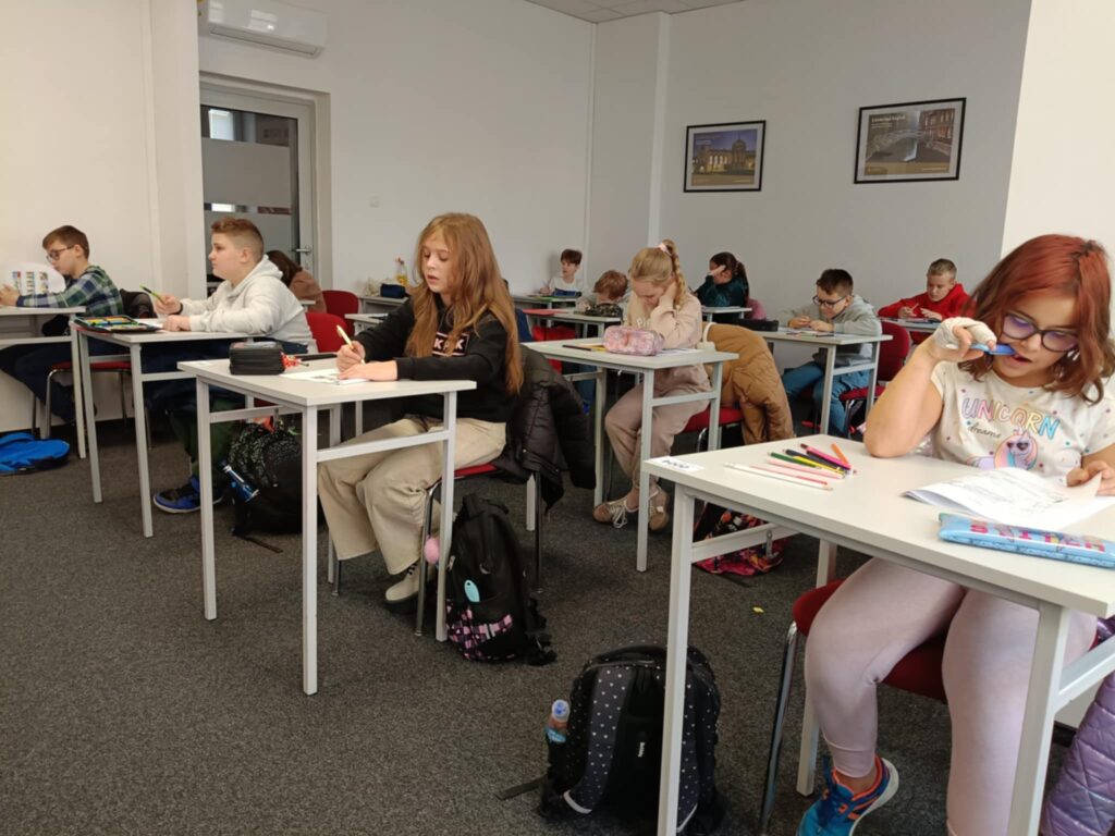 W poniedziałek, 17 listopada, klasa 4b uczestniczyła w warsztatach z języka angielskiego w ramach English Education for Schools Programme, zorganizowanych przez szkołę językową English Club w Poznaniu. Zajęcia prowadził native speaker, a uczniowie mieli świetną okazję rozwijać swoje umiejętności komunikacyjne w języku angielskim.