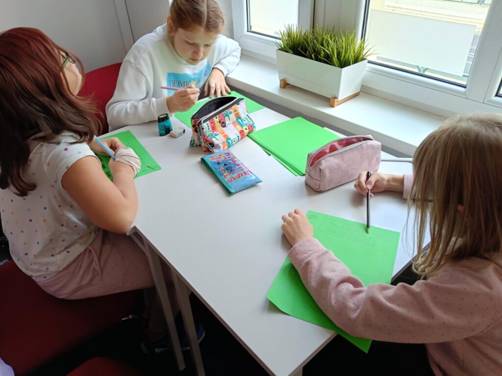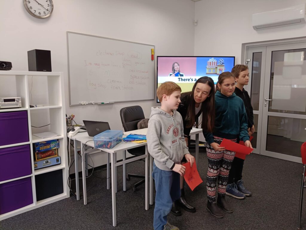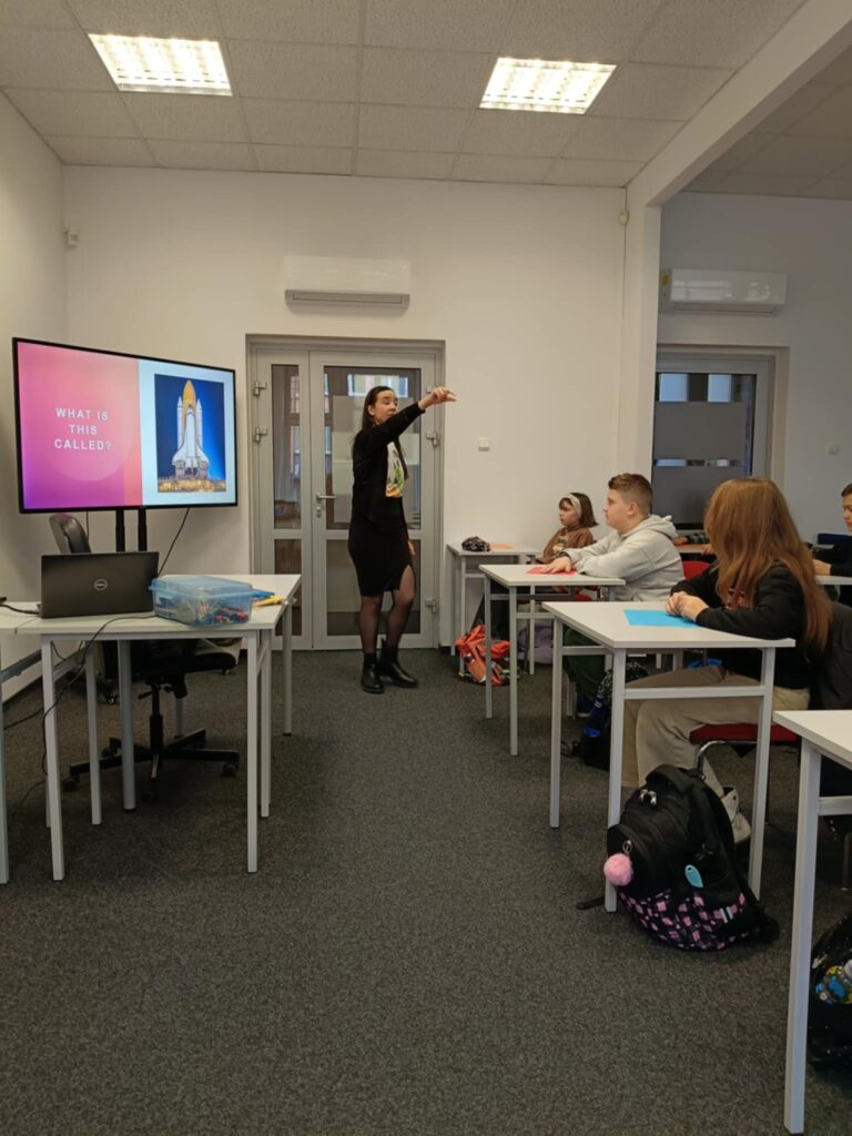 Podczas warsztatów dzieci pracowały w grupach, tworząc kreatywne projekty miasta w kosmosie. Następnie zaprezentowały swoje prace, opowiadając w języku angielskim, co znajduje się w stworzonych przez nie kosmicznych miastach. Na koniec sprawdziły swoją wiedzę i umiejętności, rozwiązując przygotowany test.