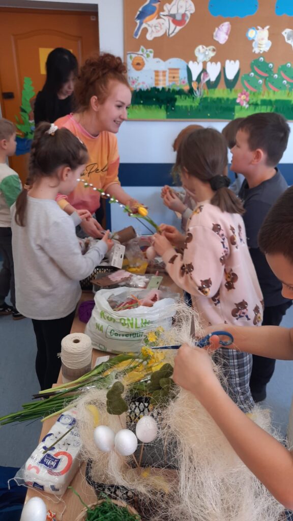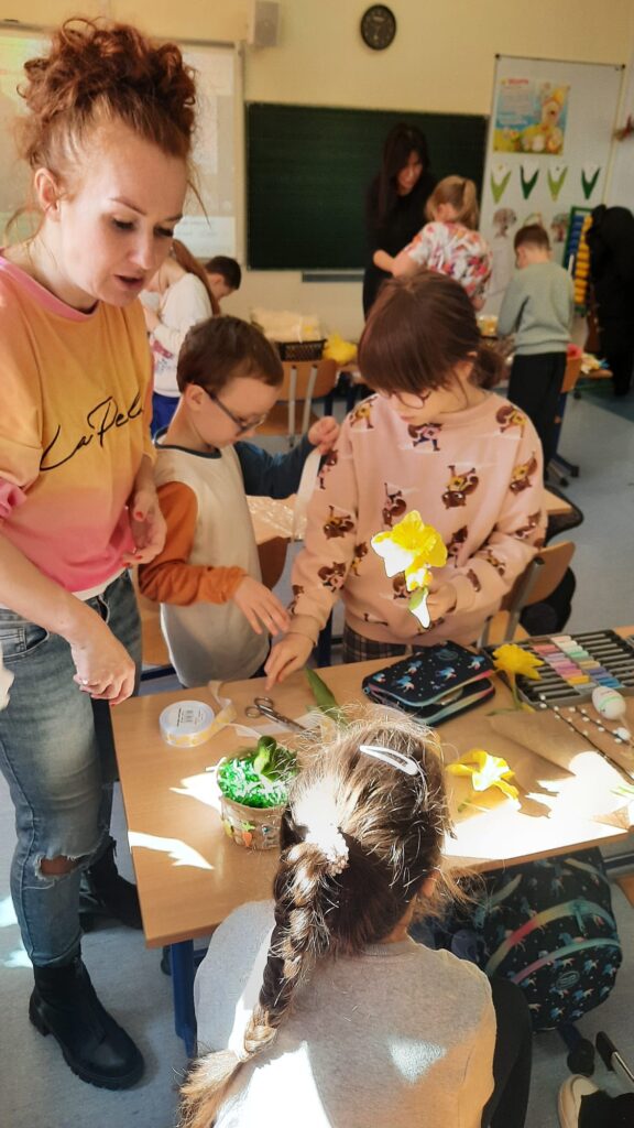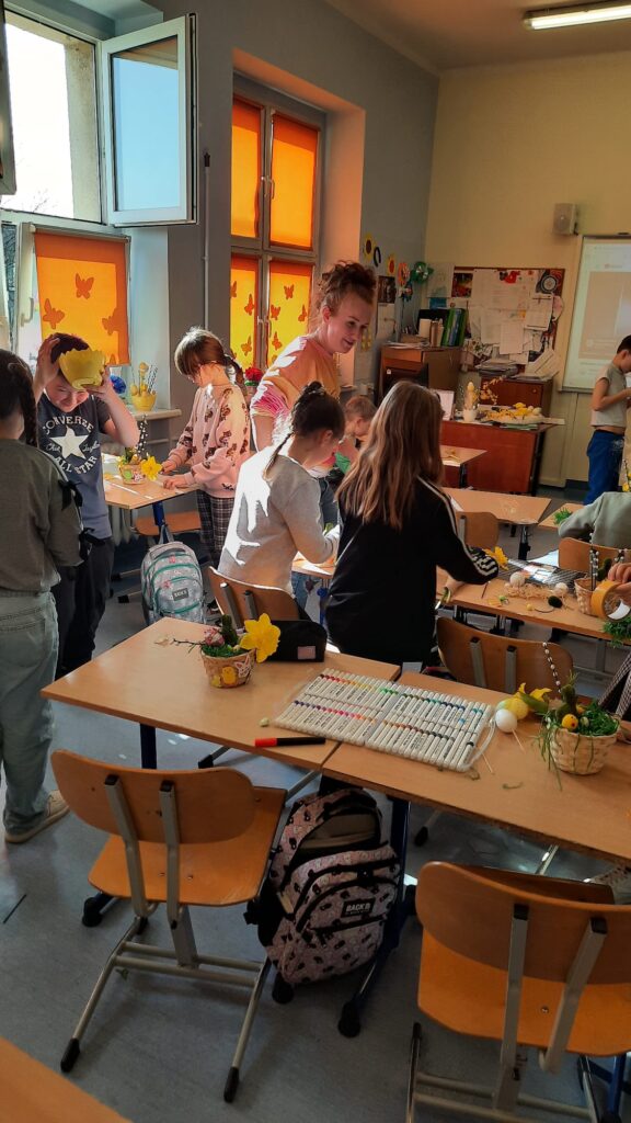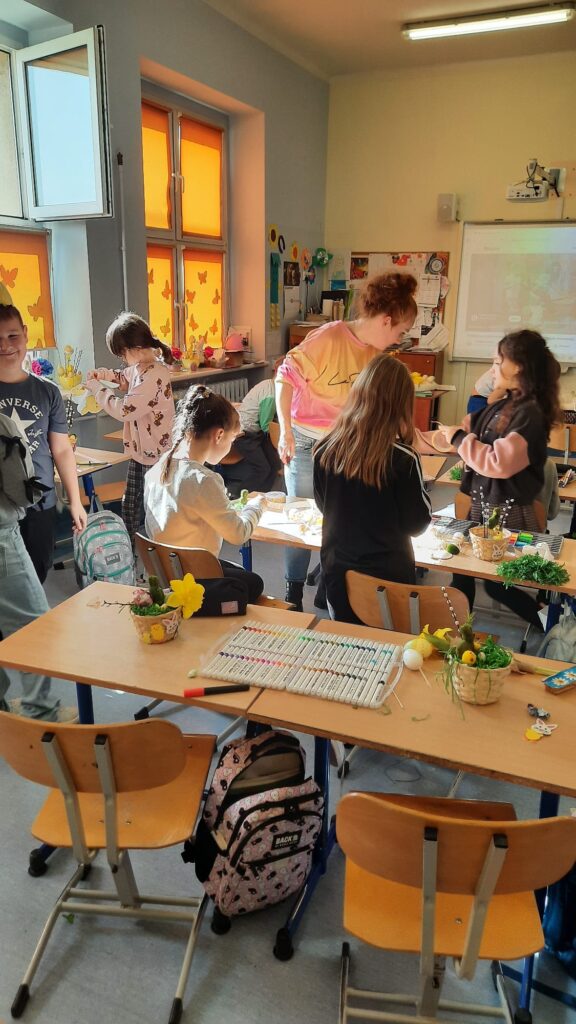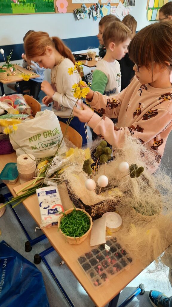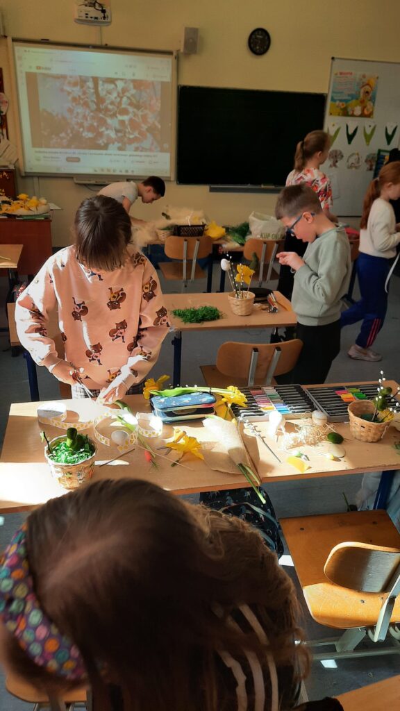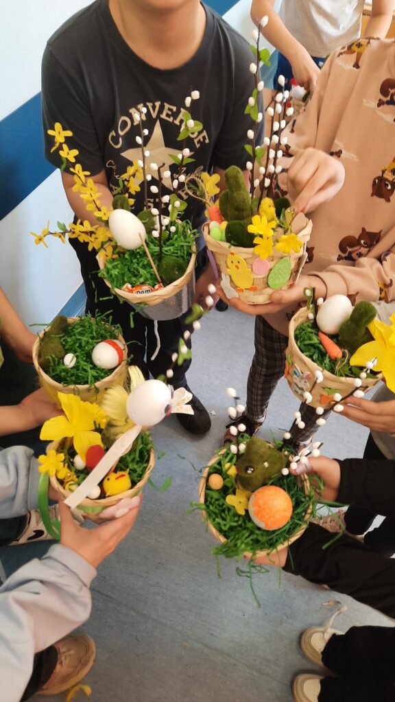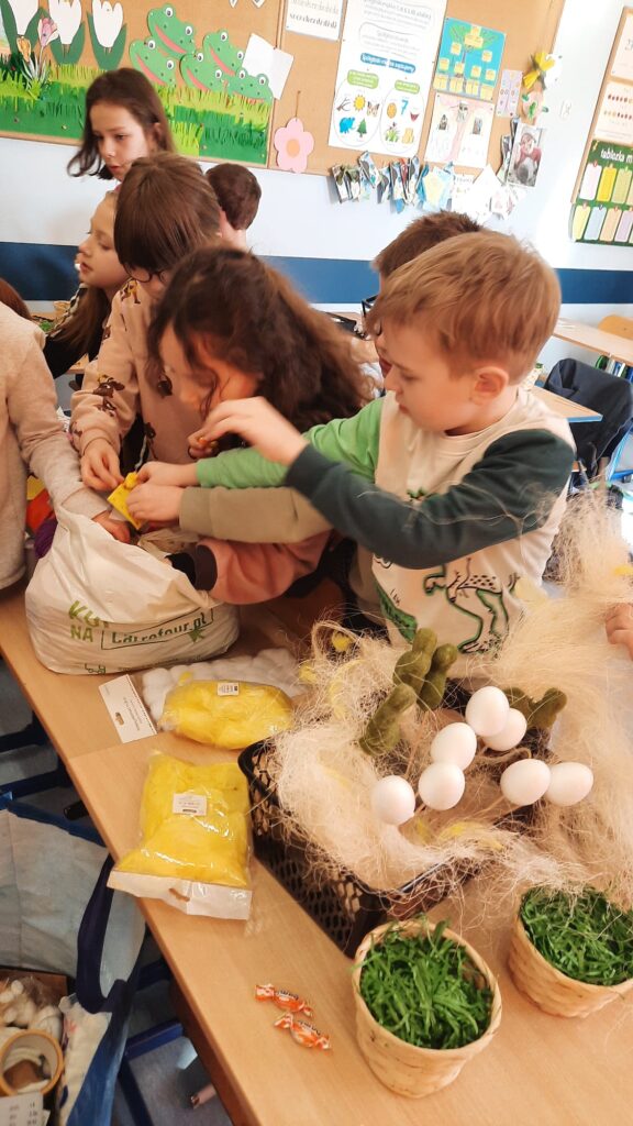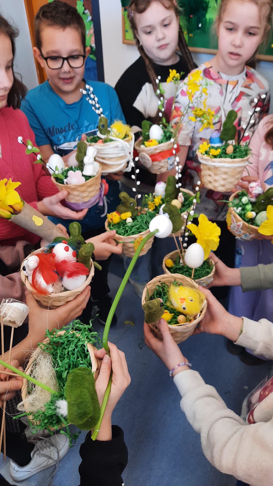 Z pomocą mamy dzieci przygotowały wielkanocne koszyczki. Pomysłom nie było końca, a uczniowie z wielkim zapałem przystąpili do pracy. Na zakończenie zaprezentowali efekty swojej twórczości.