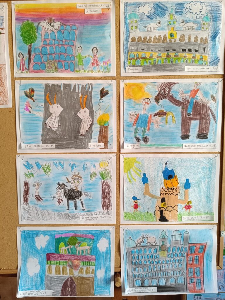 W marcu w naszej szkole odbył się konkurs plastyczny dla przedszkolaków pt. „Legendy Poznania”. Dzieci z Przedszkola nr 8 oraz 67 przygotowały piękne ilustracje inspirowane legendami: „O poznańskich koziołkach”, „O Lechu, Czechu i Rusie” oraz „O rogalach świętomarcińskich”.