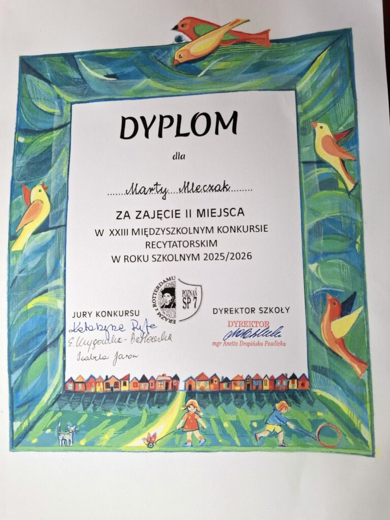 Dziękuję za wasze piękne przygotowanie się do konkursu. Dziękuję za reprezentowanie naszej szkoły 🙂